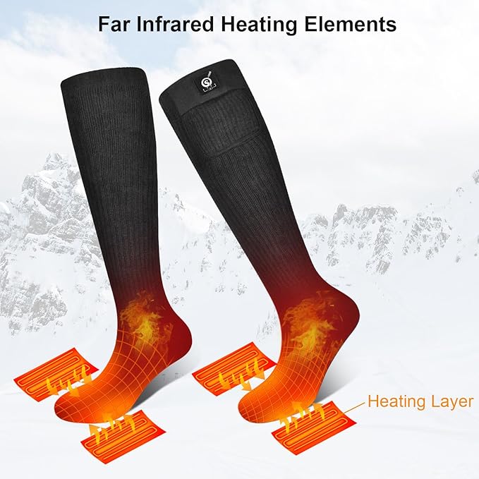 - 【Heating Elements Covers Instep and Toes Area】Upgraded heated socks to use fiber heating elements all around both fore foot and instep. Great for cold feet.Give you a warm winter!