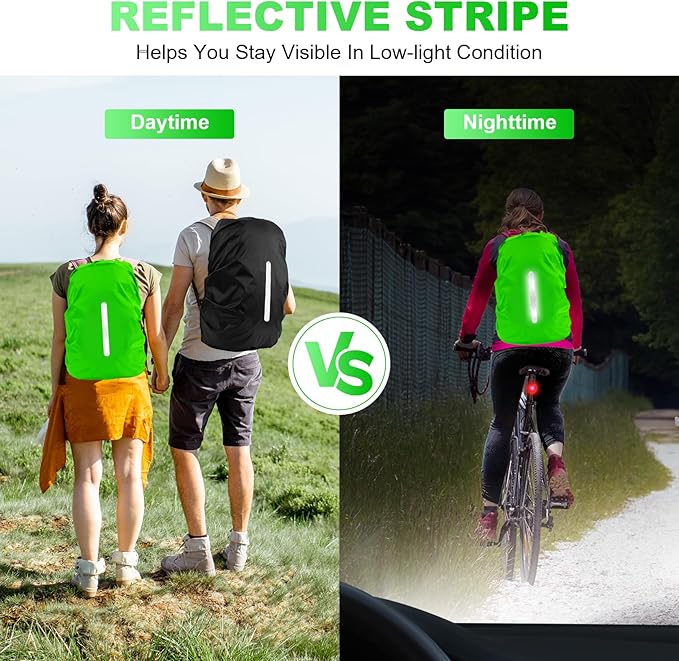 LAMA 2pcs Waterproof Rain Cover for Backpack, Reflective Rainproof Protector for Anti-dust and Anti-Theft L 45L-55L Black Green