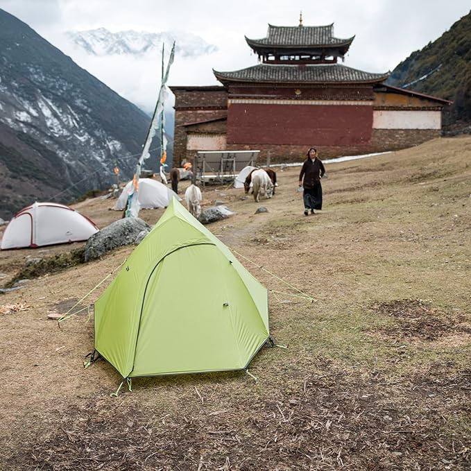 - 【FOOTPRINT INCLUDED】:This backpacking tent comes with the footprint for the tent, you don’t need to purchase separately. And you will also get Pegs x 12, wind ropes x 3, 7001 Aluminum alloy poles x 1 set, rain fly x 1, inner tent x 1, strapping tape x 1, carry bag x 1