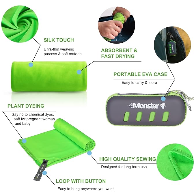 4Monster Camping Towel Super Absorbent-Quick Dry Microfiber Towel Ultra Compact & Soft-Travel Towel Lightweight for Backpacking,Hiking,Gym,Beach,Swimming,Yoga