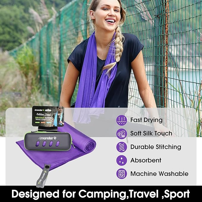 4Monster Camping Towel Super Absorbent-Quick Dry Microfiber Towel Ultra Compact & Soft-Travel Towel Lightweight for Backpacking,Hiking,Gym,Beach,Swimming,Yoga