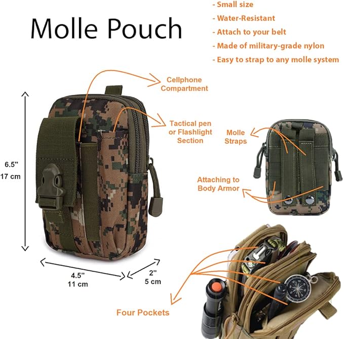 - **Compact & Lightweight**: Our camping kit is neatly organized in a durable bag (6.5" x 4.8" x 3"), making it easy to carry. It's small, lightweight, and has room for adding your gear. Molle-compatible straps allow attachment to other bags or belts, perfect for outdoor activities.
