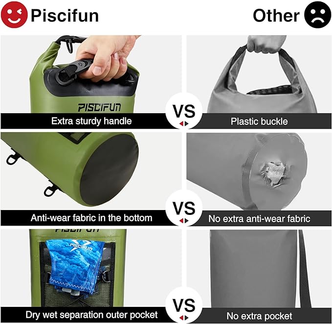 - Heavy Duty Material: Made of 500D PVC Material, Piscifun dry bag offers durability and protection for your items during outdoor activities