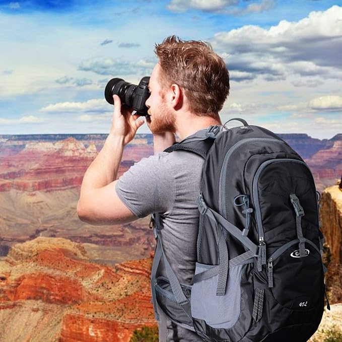 • 【Durable & Waterproof 】G4free 45L Hiking Backpack is made of highly water-resistant and ripstop polyamide fabric, with SBS zippers, which is more durable and long-lasting for us. Most important, it is with rain cover, totally waterproof, and convenient for hiking, climbing, and camping enthusiasts.