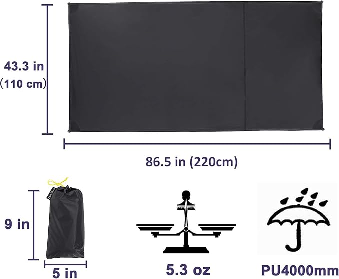 - Waterproof & Lightweight --- The waterproof fabric is treated through siliconized, the water resistance level equals to PU4000mm. Only 5.3 oz(150g) weight, the footprint can be packed into small size for your convenient carrying
