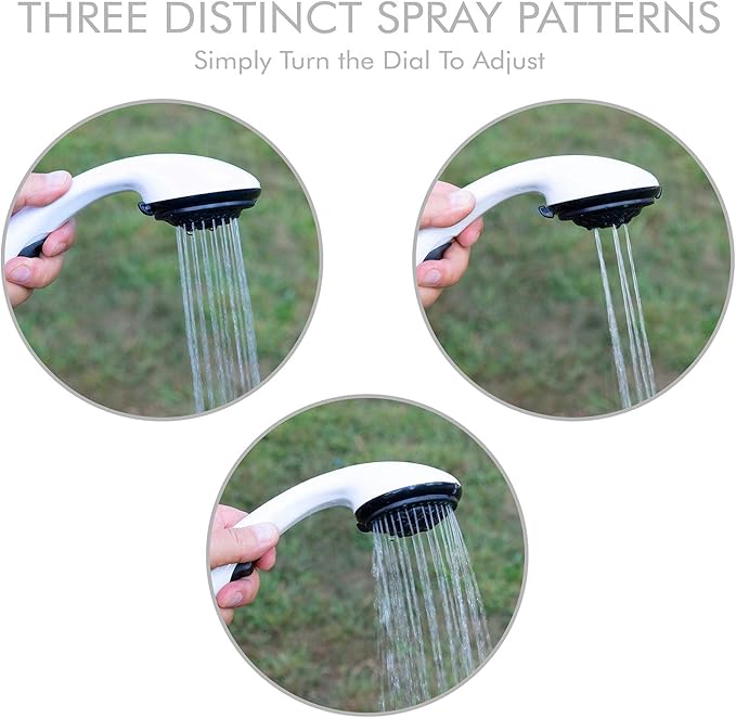 - COMFORTABLE CAMPSITE SHOWERS – Includes Water Temperature Control Knob, Hand Faucet/Spigot & Shower Head Attachment w/ [3] Adjustable Spray Patterns