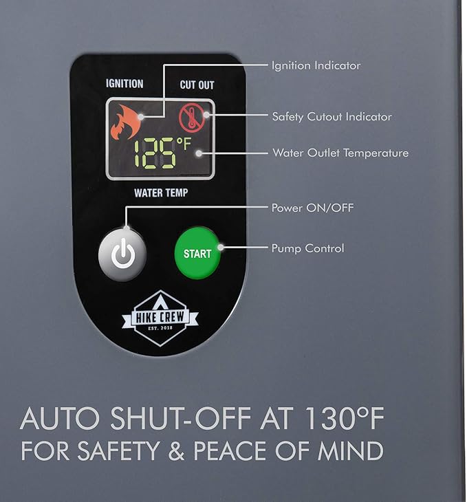 - AUTOMATIC SAFETY SHUTOFF – Smart Technology Turns Off the Gas Burner When Water Reaches 142-149 °F; Water Flow Sensor & Fuse & Tilt Protection for Added Safety