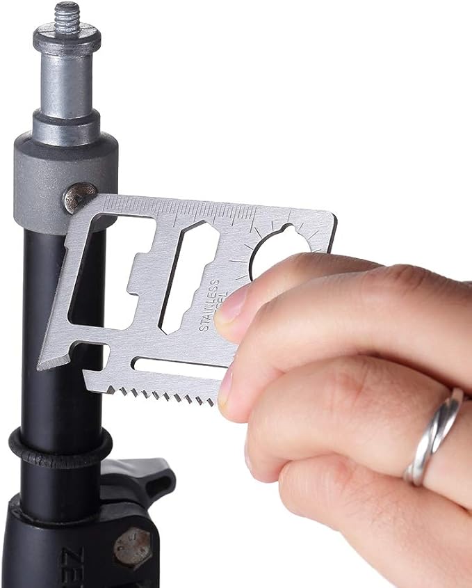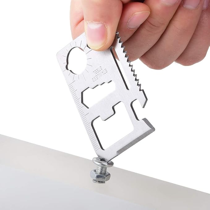 - 11 Functions in One Compact Tool: Can opener, bottle cap opener, 4-position wrench, 2-position wrench, butterfly screw wrench, direction auxiliary wrench, knife edge, saw blade, screwdriver, ruler, and keychain hole.