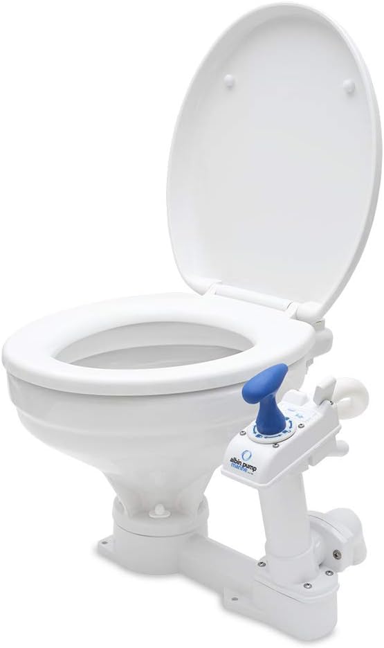- Toilet Manual ComfortManual comfort toilet.Easy to clean white regular ceramic bowl, white thermoplastic softclose seat and manual ergonomic flush pump with handle that can be mounted on left or right hand side. Stable base for robust installation.Plug & play/ interchangeable with Jabsco 29120-3000, Johnson Pump 80-47230-01 and other manual comfort toilet models.Features: