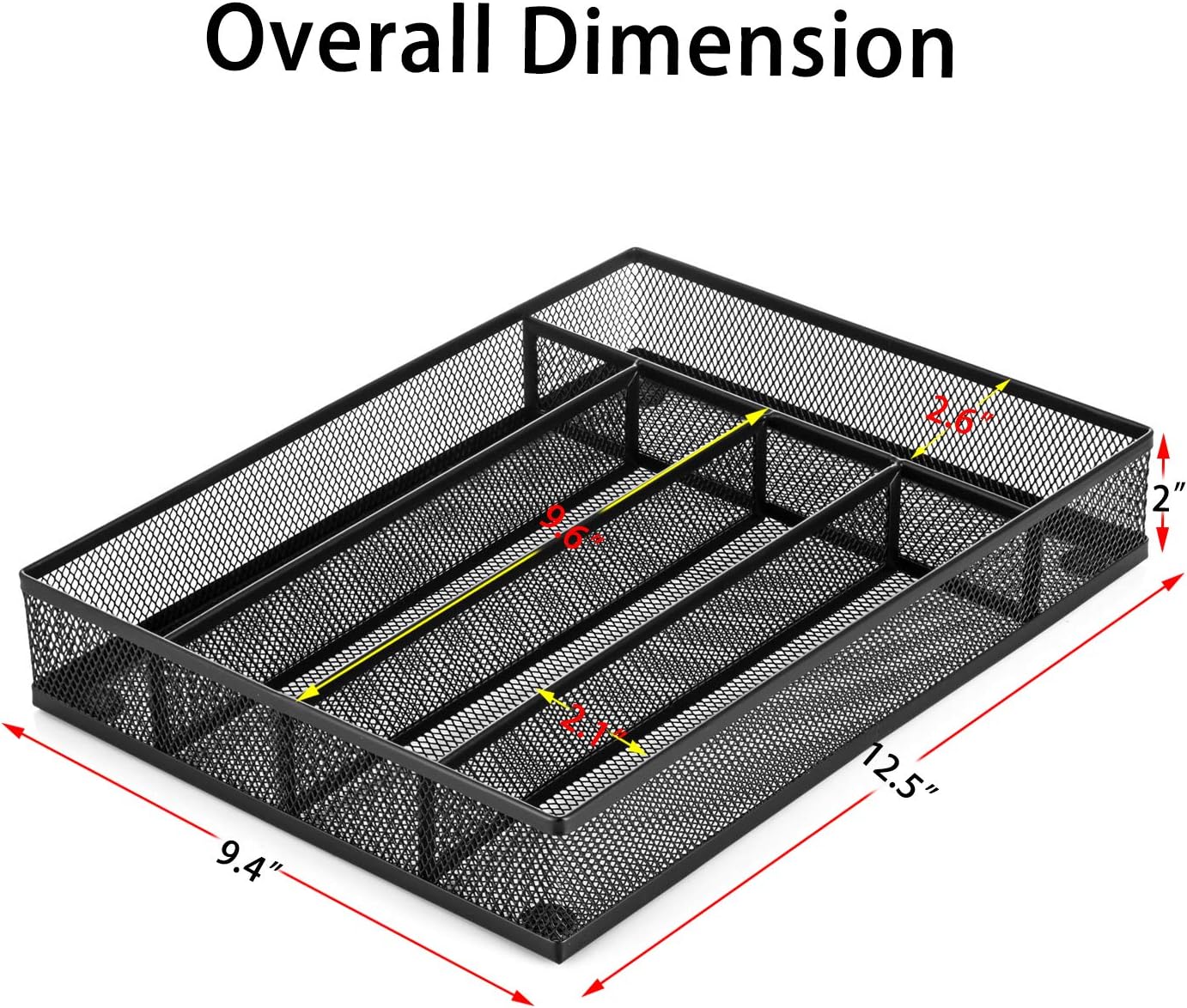 - 【5 Compartments】- Easily accommodate your silverware storage needs. The silverware tray will not collect dirt and/or grime like similar plastic trays. Dimensions: 12. 5" X 9. 4" X 2"