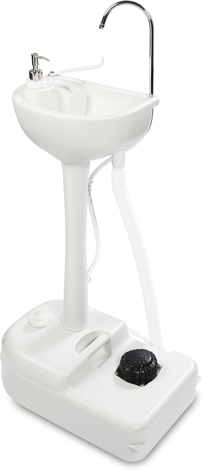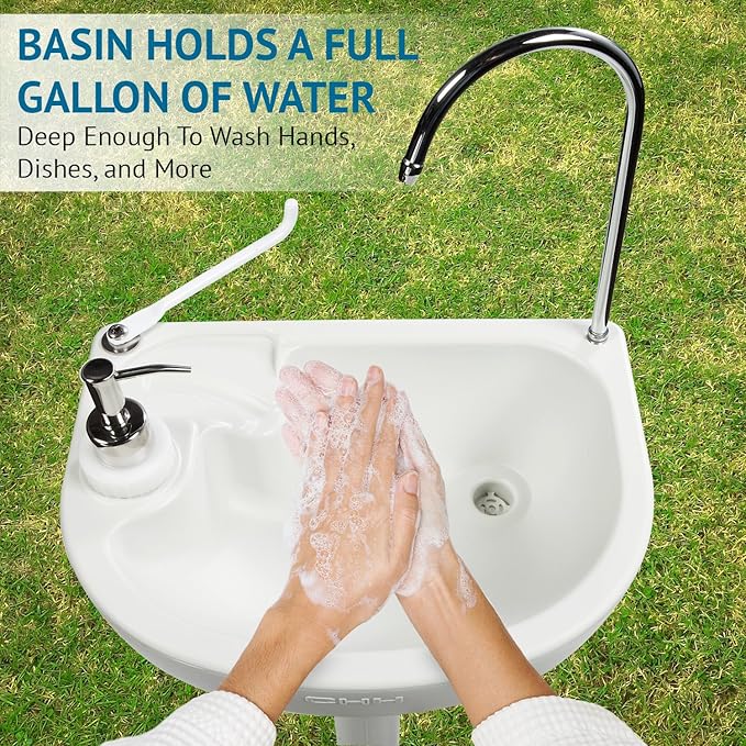 - PORTABLE OUTDOOR SINK - Multipurpose Cleaning Station Features Large Pedestal Sink & 19L Water Tank for Backyard Parties, Picnics, BBQs, Events, Camping, Worksite, Hiking, Hunting & other Recreational Activities