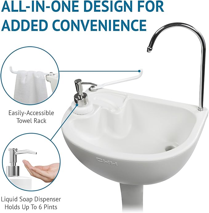 - INTEGRATED SOAP DISPENSER/TOWEL HOLDER- Holds Up to 6 Pints of Liquid Soap or Detergent; All-in-One Design Includes Handy Stainless Steel Towel Rack, Wash Basin & Carry Handle for Travel