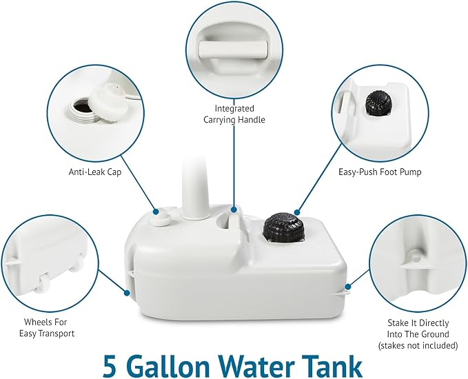 - DURABLE FOOD SAFE CONSTRUCTION - High-Density Material Stands Up to Weather & Long-Term Use; Includes Built-In Handle, Easy-Assemble Wheels, Metal Fixtures & Flexible Drainage Hose. Used water can be recycled for the Eco-friendly minded. Safe for Washing Hands, Foods or even Drinking.