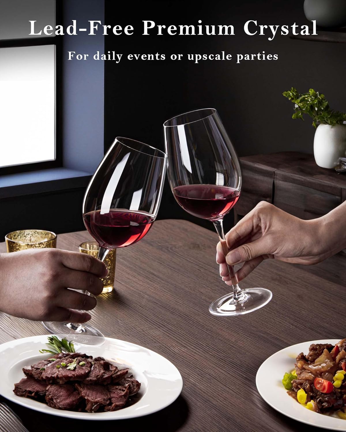 JBHO Hand Blown Italian Style Crystal White or Red Wine Glasses - Gift Packaging for Any Occasion - Lead-Free Premium Crystal Clear Glass - Set of 4-18 Ounce