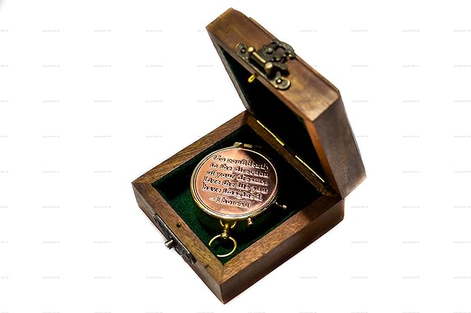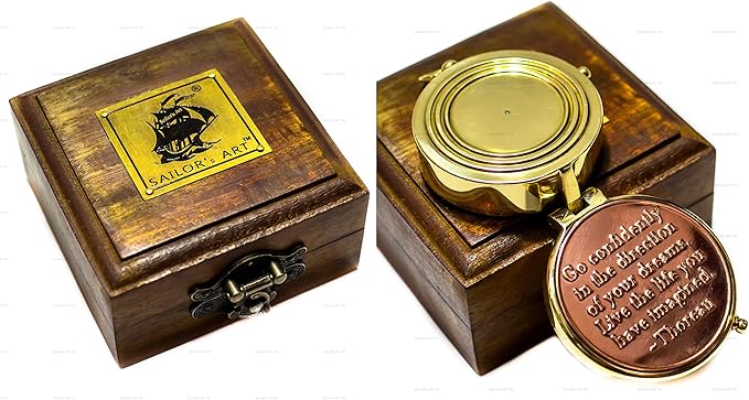 - QUOTE ENGRAVED - With a famous quote by one of the Greatest Poet Thoreau, "go confidently in the direction of your dreams ", engraved on the front of the compass. This engraved compass would make it a ideal gift item. Each compass made by SAILOR’S ART are handcrafted by finest Indian artisans and comes which fingerprint resistant finish.