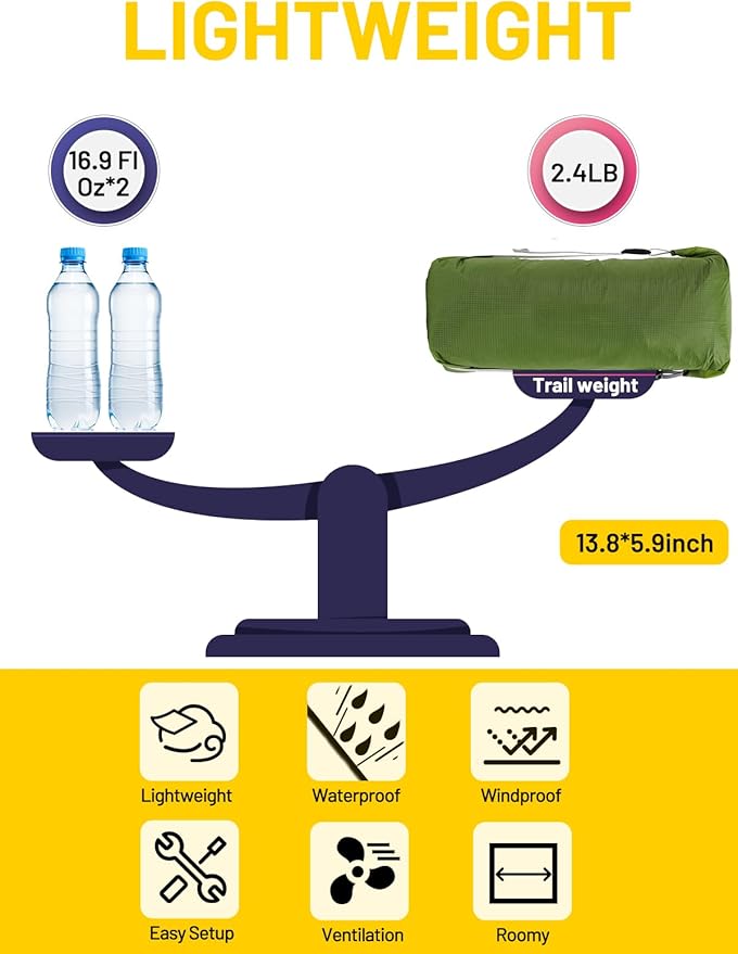 - VERSATILE ULTRALIGHT TENT: One ventilation window and full high density mesh inner tent, provide good breathability and prevent condensation from building up. It fits for trekking, mountaineering, hiking, camping and other outdoor sports