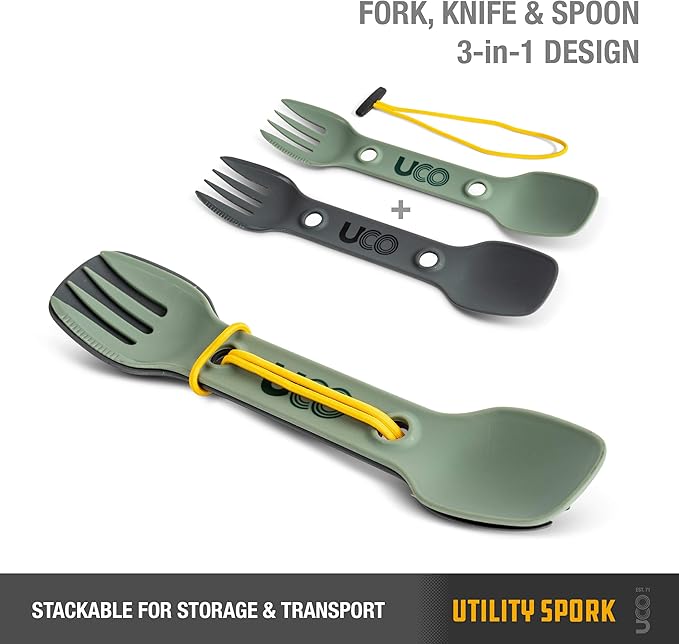 - 3-In-1 Camping Spork: No need to pack multiple camping cooking utensils – our spork features a dedicated fork and spoon, plus a serrated fork edge for cutting