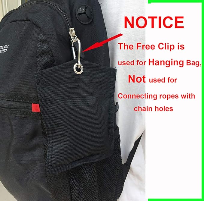 - Come with upgraded hand bag. NOTICE: The clip is used for hanging throwing bag, NOT for connecting ropes with the chain holes