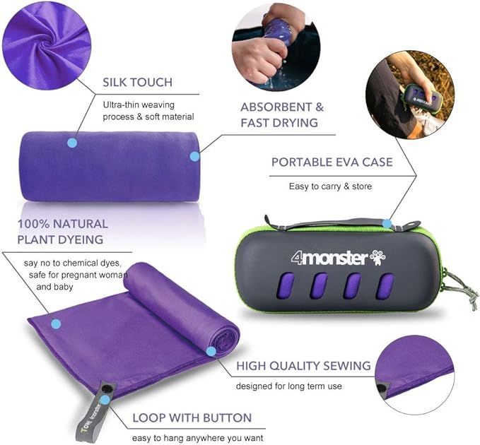 4Monster Camping Towel Super Absorbent-Quick Dry Microfiber Towel Ultra Compact & Soft-Travel Towel Lightweight for Backpacking,Hiking,Gym,Beach,Swimming,Yoga