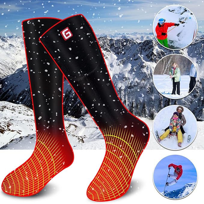 - 🔥Delicately Package&Ideal Gift in Winter: Battery operated heated socks can be used not only for outdoor sports in winter, but also provide warmth and comfort in cold temperatures. In addition, beautiful design package is perfect as Christmas, birthday and other holiday gifts. Are great Christmas/Birthday/Halloween/New Year surprise gifts for your and friends,parents and lovers. Package include: a pair of heated socks, two 3.7V rechargeable batteries, a AC charger and instruction.