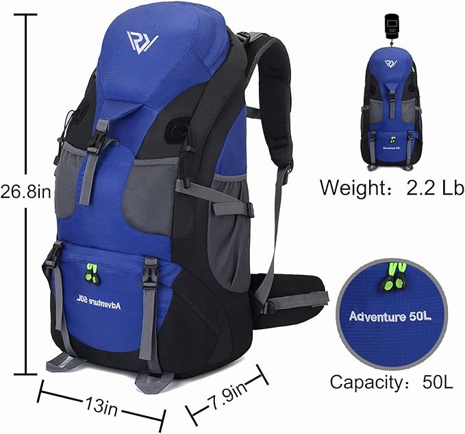 50L Hiking Backpack, Waterproof Lightweight Daypack for Outdoor Camping Travel