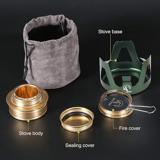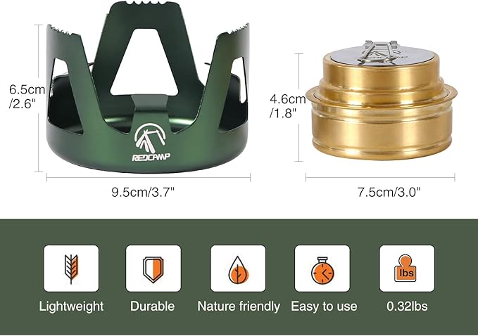 REDCAMP Mini Alcohol Stove for Backpacking, Lightweight Brass Spirit Burner with Aluminium Stand for Camping Hiking, Green