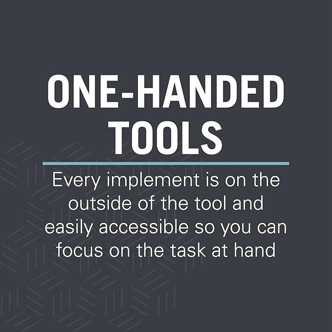 - ONE-HAND ACCESS: Every implement is on the outside of the tool; Quickly open and close every tool with a single hand