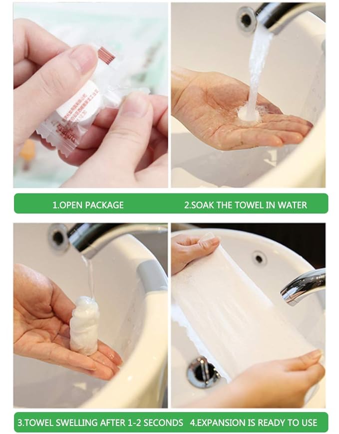 - Just add water to expand towel, allowing for immediate use. Reuse up to 10 times.