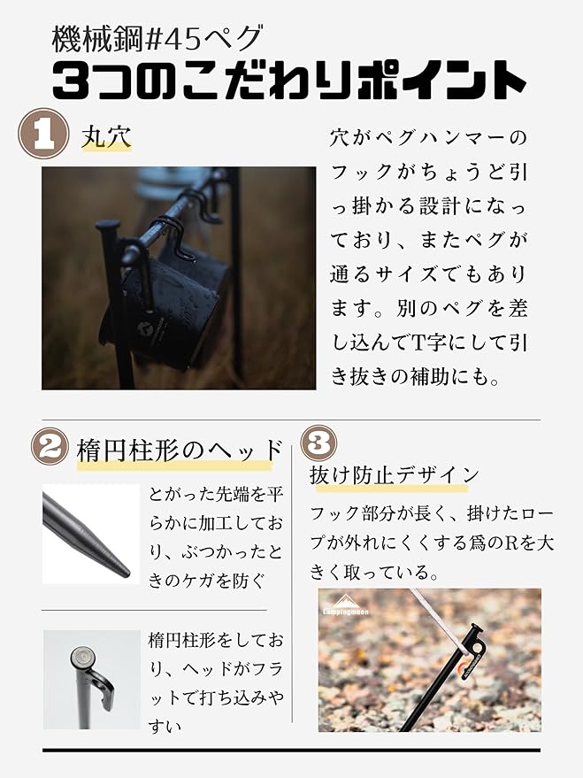 - CAMPINGMOON 8pcs Carbon Steel S45C Black Coating Tent Stake for Hard Ground