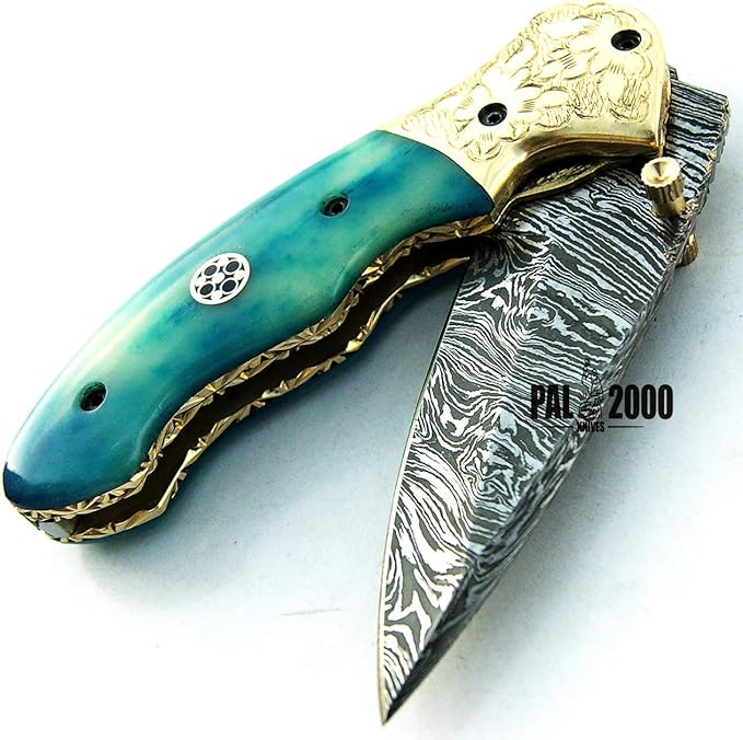 - ORIGINAL DAMASCUS STEEL KNIVES from PAL 2000 KNIVES - Full Damascus handle - Total length 07.40 inches ...... Blade length 03.40 inches ....... Close Length 04.00 inches.