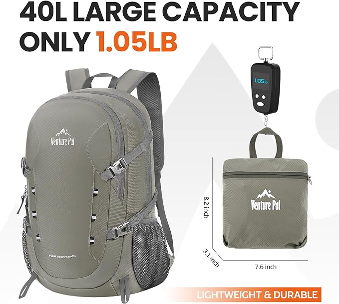 - Large Capacity and Multi Compartment: With 40L storage space, this backpack features with multi-compartment design includes one main zipped compartment, one zipped front pockets and two side pockets. One separator and one small zippered pocket in the main compartment are convenient enough to help you further organize things, can carry water, trail snacks, rope, and standard tools, the portable bags for climber. Large capacity helps you easily organize all your essential items