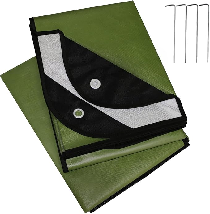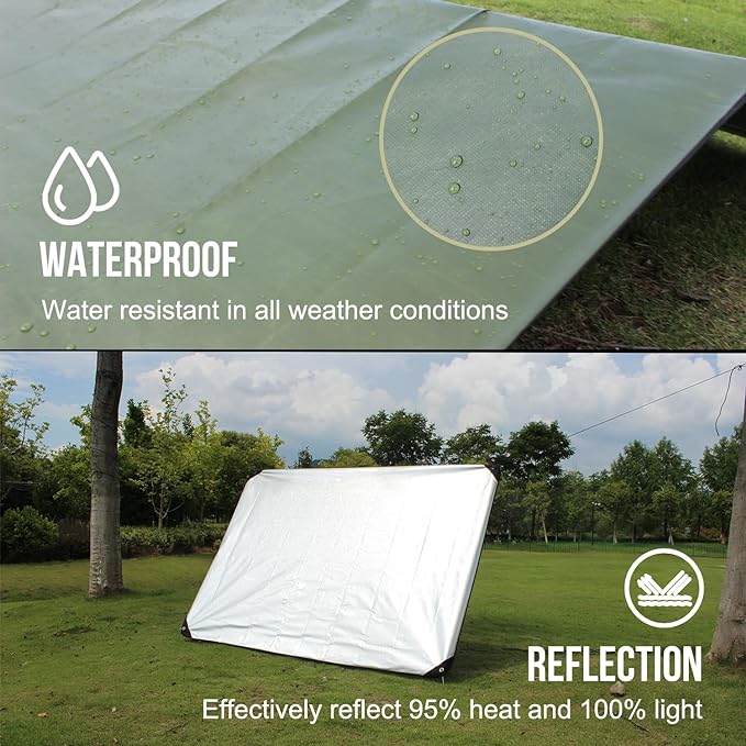 - âşď¸ăReusable and DurableăRugged 4 Layers including PE, Polyester Mesh and Aluminum Foil. Suitable for Many Situations, including Raincoat, Camping, Hiking, Mountainning, Snowfield and Heavy Duty. Also Can be Used as Car Protection, Sunshine Shelter, Pets Shelter, SOS Signal, Solar Heater for Many Times.