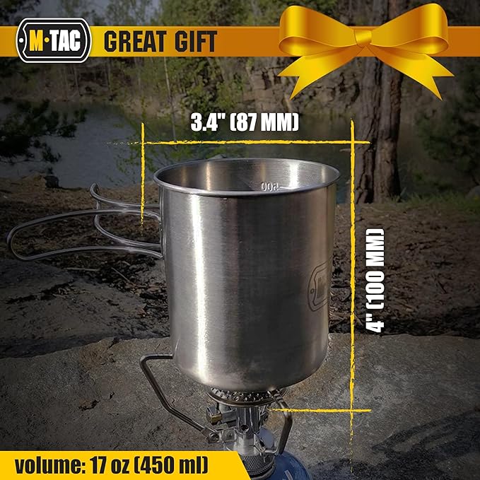 - MULTIFUNCTIONAL: rugged steel pot allows you to cook food right in cup, using it as dish or just boil water for your meal or tea/coffe.