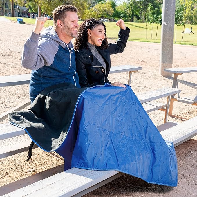 - Waterproof, Windproof, Sandproof - Designed to keep you dry on the wettest of days, the waterproof backing on our outdoor blankets is made from a strong, durable polyester fabric with a polyurethane coating, preventing water and moisture from penetrating through to the plush polar fleece. An ideal Stadium Blanket to keep you warm and dry or great for use as a Picnic Blanket or Beach Blanket.