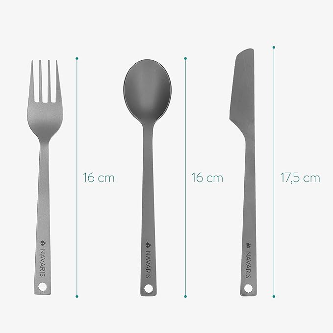 - SUPER LIGHTWEIGHT: Every little counts when you're backpacking or trekking and this super light set of utensils helps you shed the ounces from your pack. All the convenience of traditional silverware but made of extremely light titanium.
