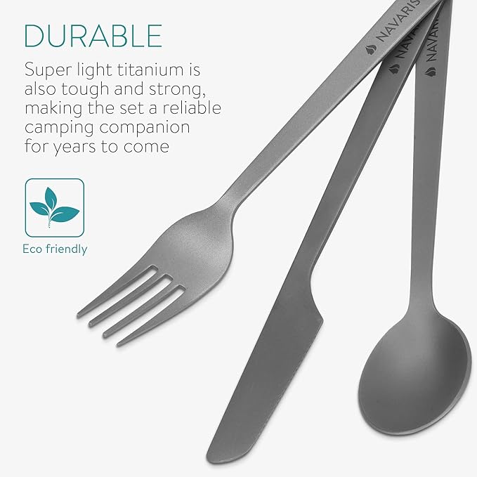 - DURABLE: Although super light, titanium is also strong and durable. The camping kit will accompany you on your outdoor adventures for many years to come.