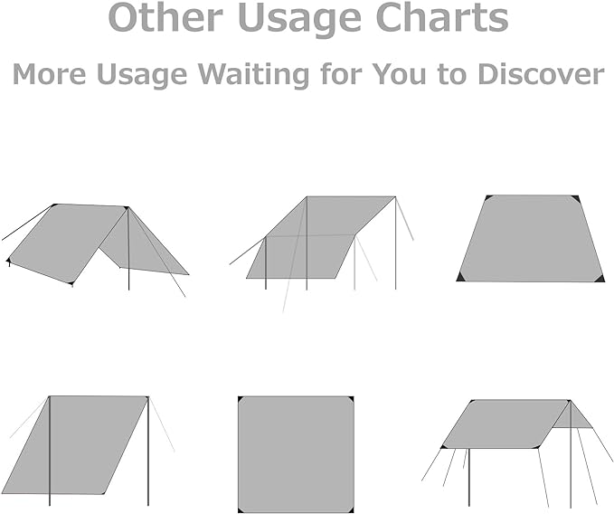 - 🍀 EASY TO USE: Unfold the camping tarp and use it as a tent footprint on the ground to protect the tent from dust, dirt and sharp objects; use a rope and tent pole can easily create a hammock rain fly for shade and awning; Put the tent tarp directly on the floor as a picnic mat, tent footprint, beach blanket etc