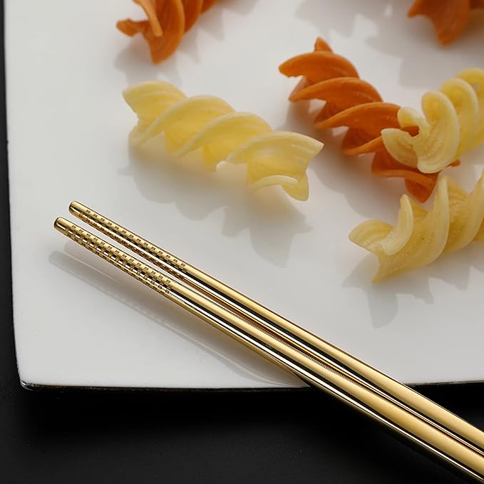 DEVICO Portable Utensils, Travel Camping Cutlery Set, 8-Piece including Knife Fork Spoon Chopsticks Cleaning Brush Straws Portable Case, Stainless Steel Flatware set (Gold)