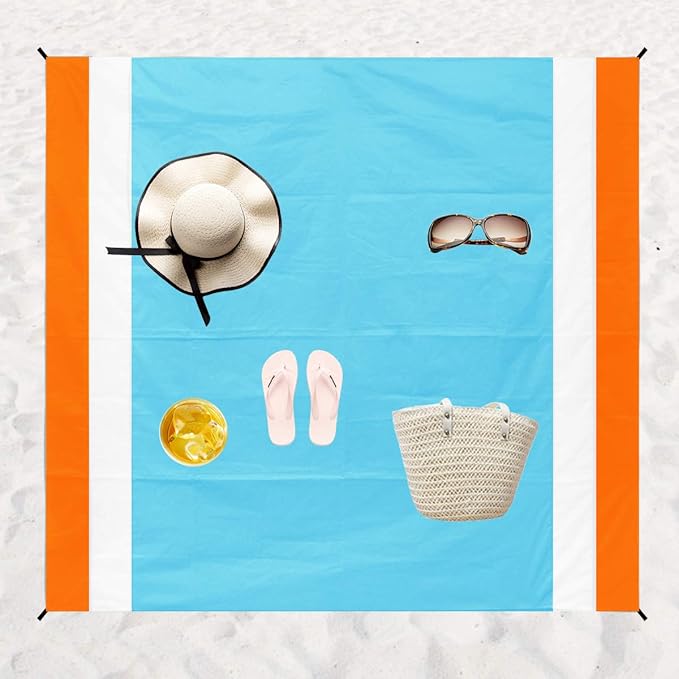 Aitey Sand Free Beach Blanket, Waterproof Beach Mat Compact Outdoor Blanket Ideal for Picnic, Travel, Hiking, Camping and Music Festivals with 4 Stakes, 4 Corner Pockets and Bag - 82"x 79"(Blue)