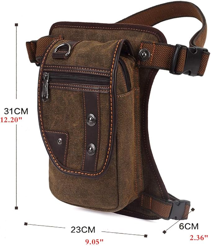 - Durable & Canvas Drop Leg Bag: This leg bag is made of CottonCanvas, top-quality zippers, adjustable straps, quick release buckle, ideal for motorcycle, bike, riding, cycling, travel, outdoor, sports, hunting, hiking, tactical, running, fishing, walking, jogging, camping, work, all kinds of outdoor activities and daily use.