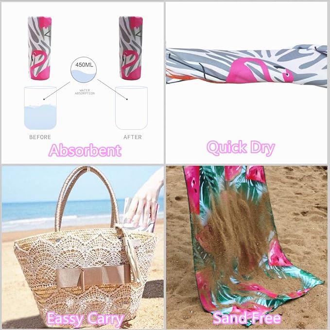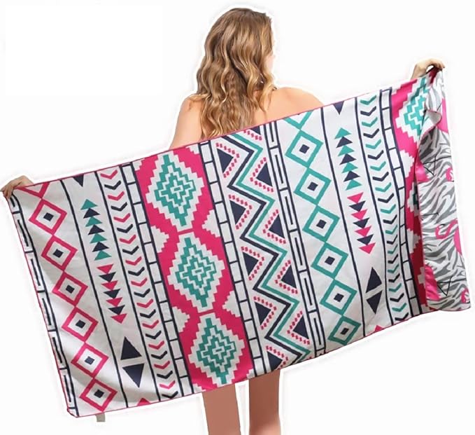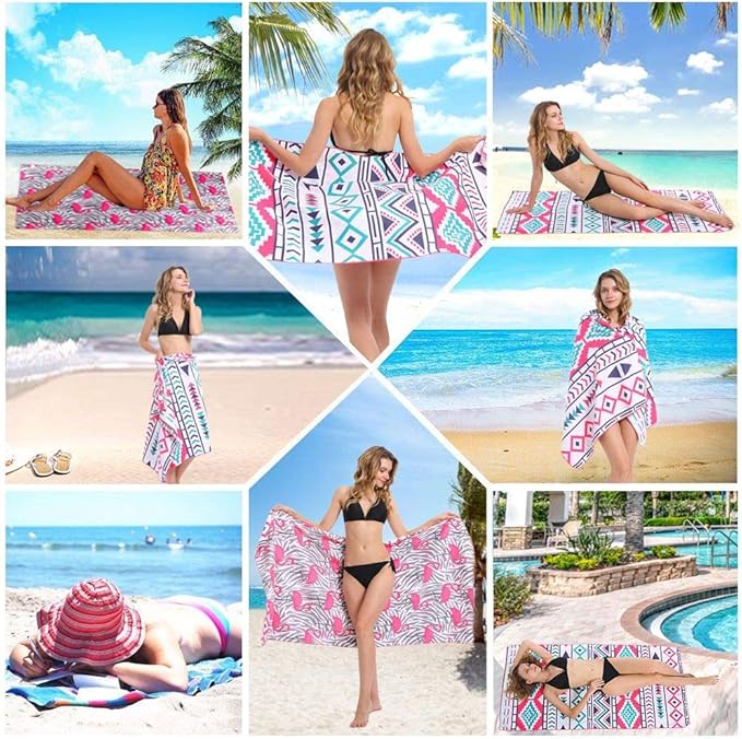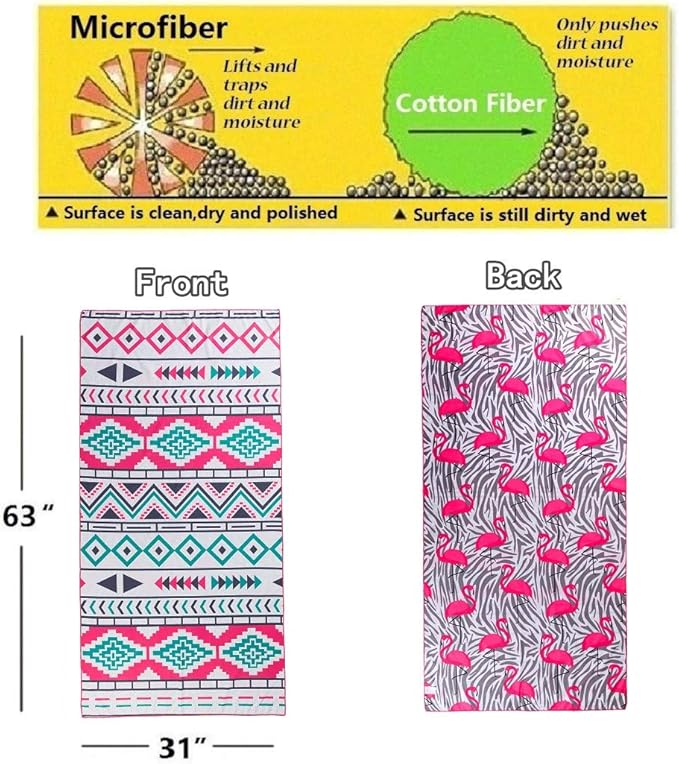 - ❤【NEW DEVELOPED TWO SIDE PRINTED】: Two side printed microfibre towel is healthy and silky smooth against your body. It is an amazing companion when you do Yoga or Pilates. It is a great beach accessory for adults,men, women, kids, infants, teens, boys and girls, outdoor recreation, hiking,camping and it saves a lot of space in your baggage.We have colorful choices for you to choose from whether is stripped cactus mandala or flamingo beach towel.No need to sacrifice comfort for style.
