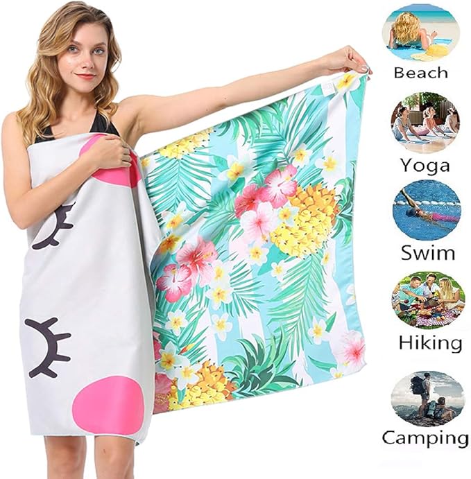 - ❤【NEW DEVELOPED TWO SIDE PRINTED】: Two side printed microfibre towel is healthy and silky smooth against your body. It is an amazing companion when you do Yoga or Pilates. It is a great beach accessory for adults,men, women, kids, infants, teens, boys and girls, outdoor recreation, hiking,camping and it saves a lot of space in your baggage.We have colorful choices for you to choose from whether is stripped cactus mandala or flamingo beach towel.No need to sacrifice comfort for style.
