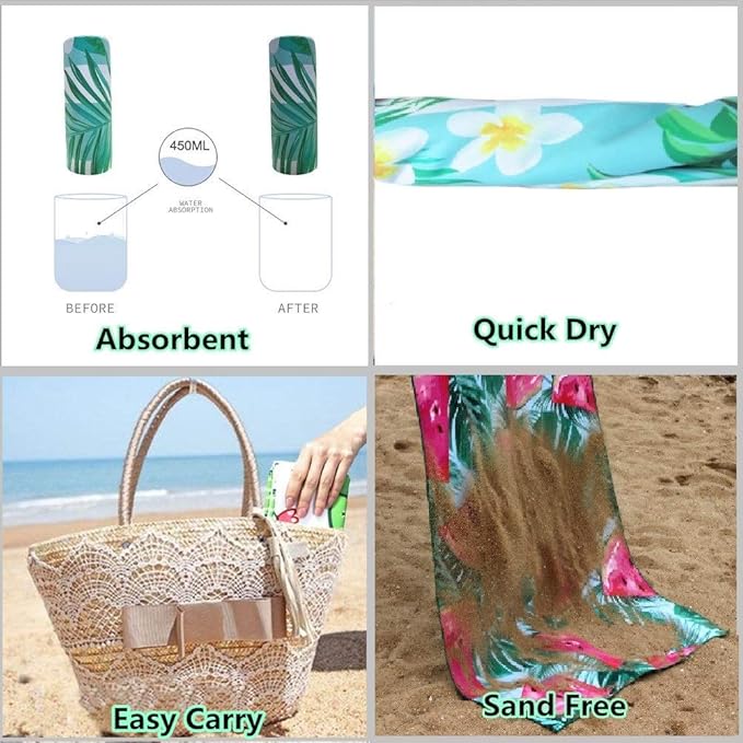 - ❤[SIZE AND MATERIAL]: Pool beach towels size 63" x 31".New developed microfiber material is eco-friendly,no faded and no smell which is not same as normal towel material.It has special characteristics– quick dry,super absorbent,sand free,baby soft.
