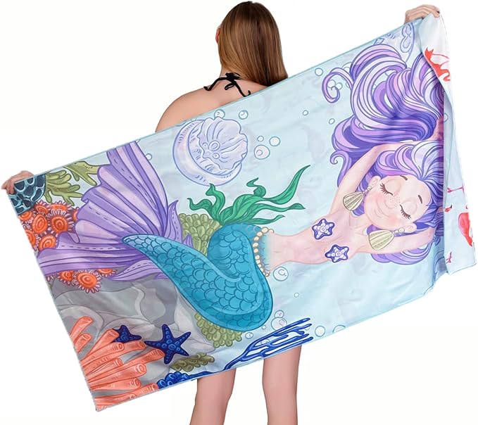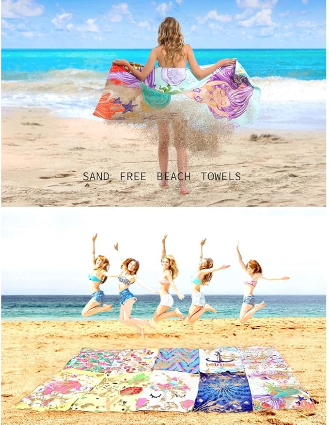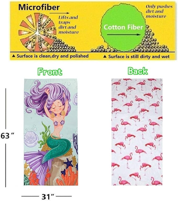 - ❤[SIZE AND MATERIAL]: Pool beach towels size 63" x 31".New developed microfiber material is eco-friendly,no faded and no smell which is not same as normal towel material.It has special characteristics– quick dry,super absorbent,sand free,baby soft.