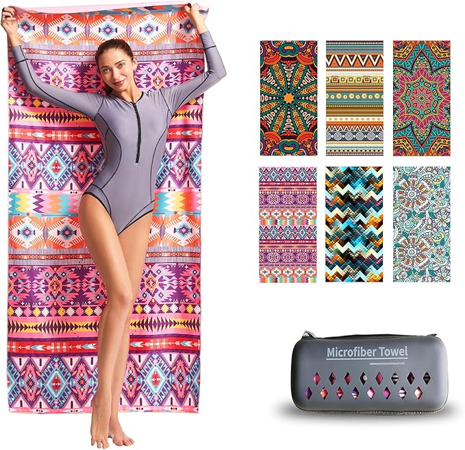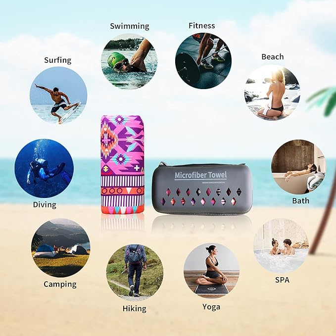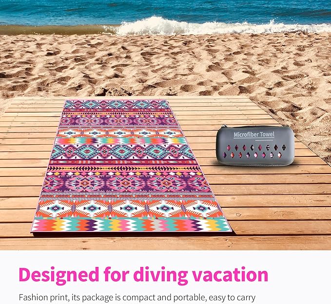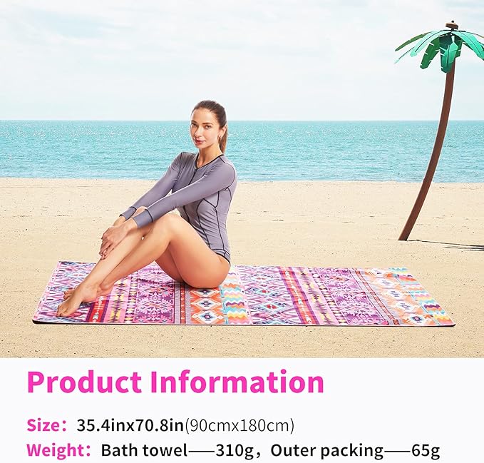 - ✔️【LIGHTWEIGHT AND SUPER SOFT】: No need to worry about your bag weighing too much when you travel with our microfiber beach towels, this beach towel only has about 0.66 LB. Soft as baby skin, it's perfect to use while traveling, exercising, swimming, bathing, camping, yoga, or simply dry up your face.