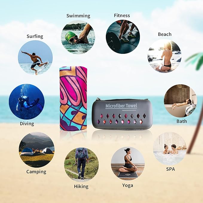 - ✔️【LIGHTWEIGHT AND SUPER SOFT】: No need to worry about your bag weighing too much when you travel with our microfiber beach towels, this beach towel only has about 0.66 LB. Soft as baby skin, it's perfect to use while traveling, exercising, swimming, bathing, camping, yoga, or simply dry up your face.
