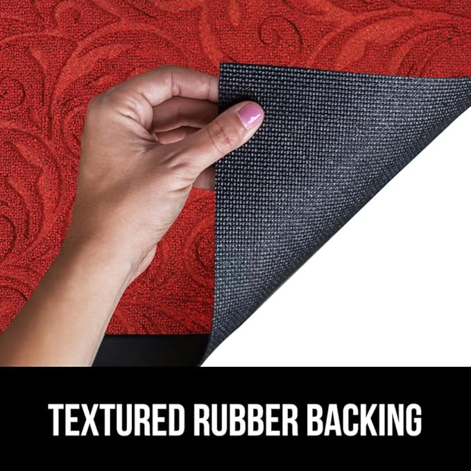 GORILLA GRIP 100% Waterproof All-Season WeatherMax Doormat, 23x35, Durable Natural Rubber, Stain and Fade Resistant, Low Profile, Indoor Outdoor Doormats, Easy Clean Patio Entry Mat, Red Vintage Wine