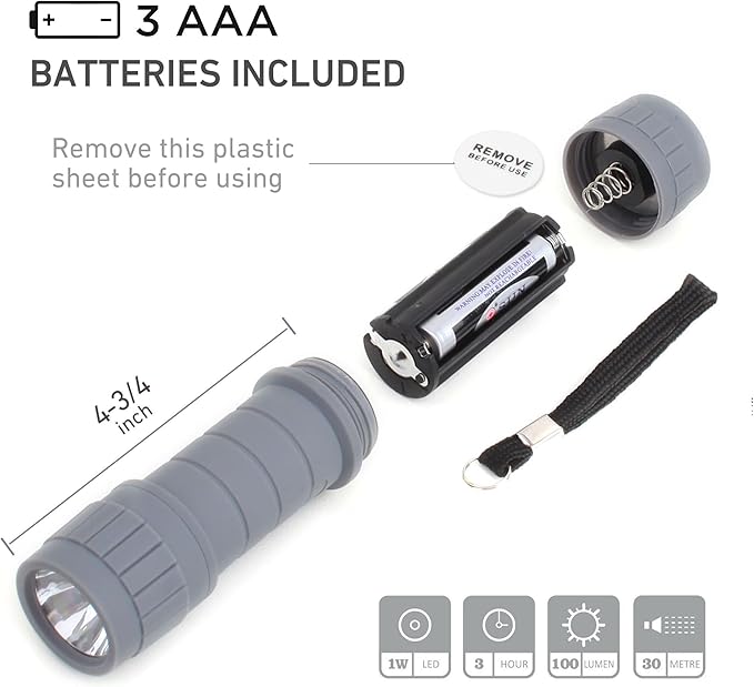 - LONG-LASTING CONSTRUCTION: These flashlights are made from heavy duty ABS with Rubberized cover, which makes them durable and withstand drops and bumps. Non-slip shell design and anti-lost lanyard for providing base for perfect essential outdoor accessory.