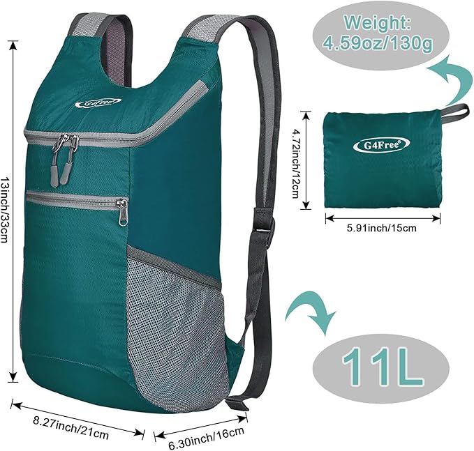 G4Free Lightweight Packable Hiking Backpack for Men Women Small Hiking Daypacks Foldable Shoulder Pack Casual Outdoor Bag 11L