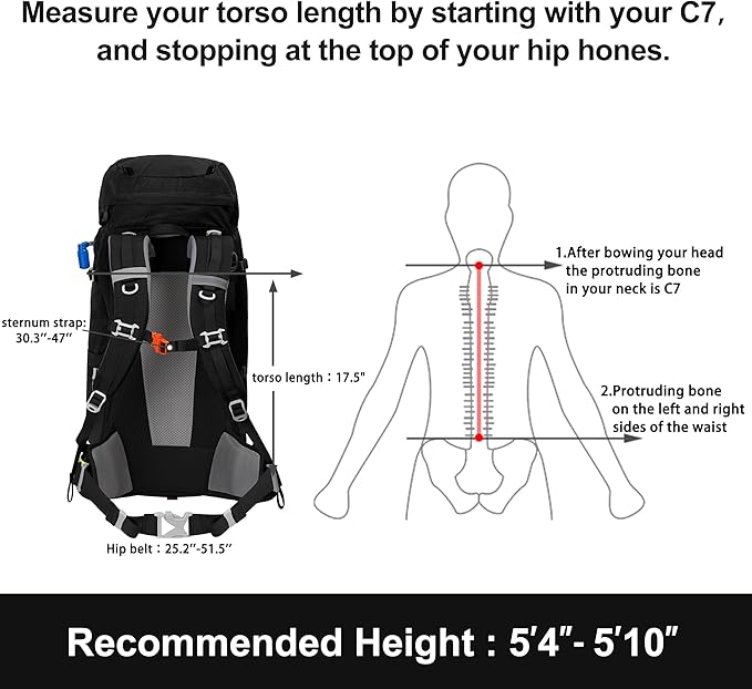 • Innovative Design: High-Load Waist Buckle- Waist buckle system stands up under big loads and is easy to tighten and thickly-padded split dual wishbone waist pad with independent top and bottom hip adjustments offers a more custom fit. Practical whistle buckle, D-shape carabiners and easy access zippers, shoulder straps, hip straps. Ergonomically designed semi-circle hollow provides head comfort even when backpacking backpack is completely full. Good for men women.